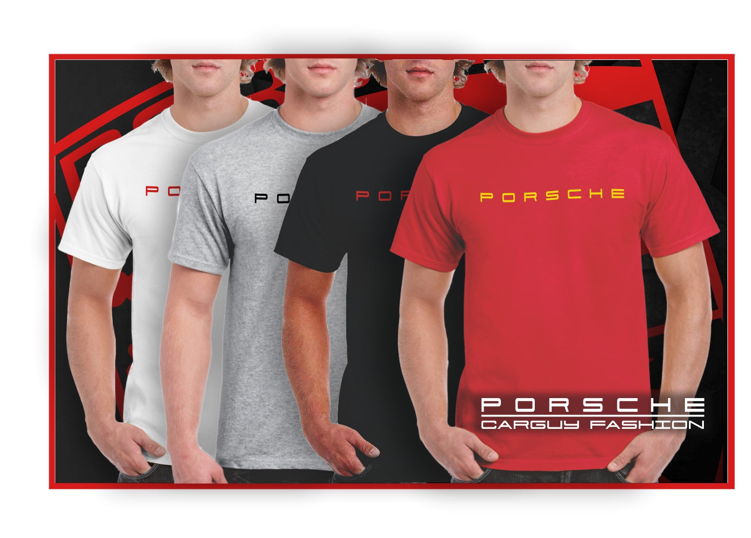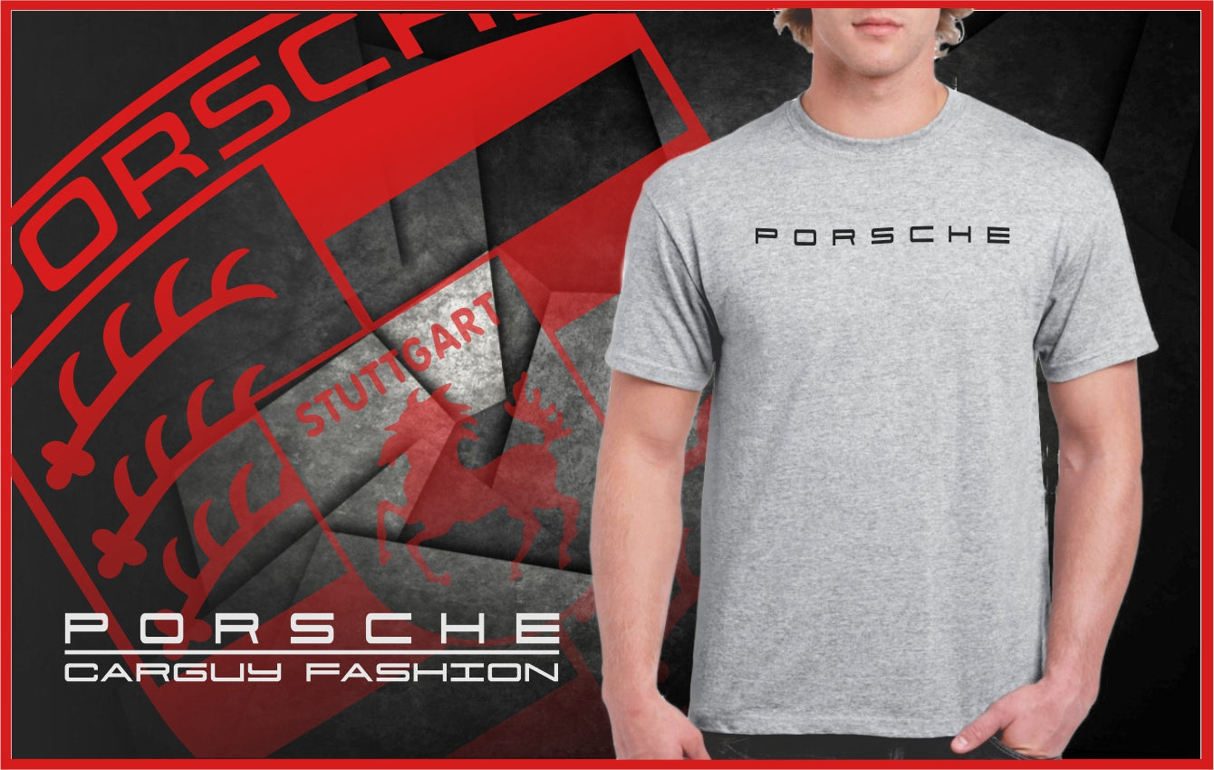 This Porsche logo inspired shirt comes in 4 classic colors, 5 sizes, your choice of lettering color.